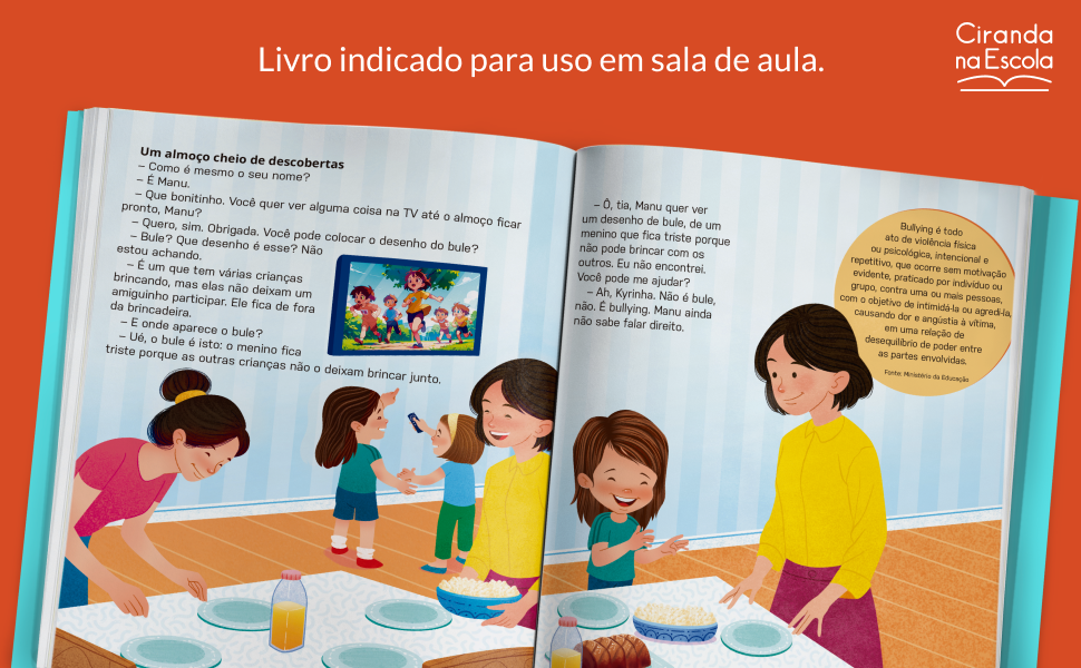 Estimula o diálogo sobre convivência, respeito e superação de conflitos.